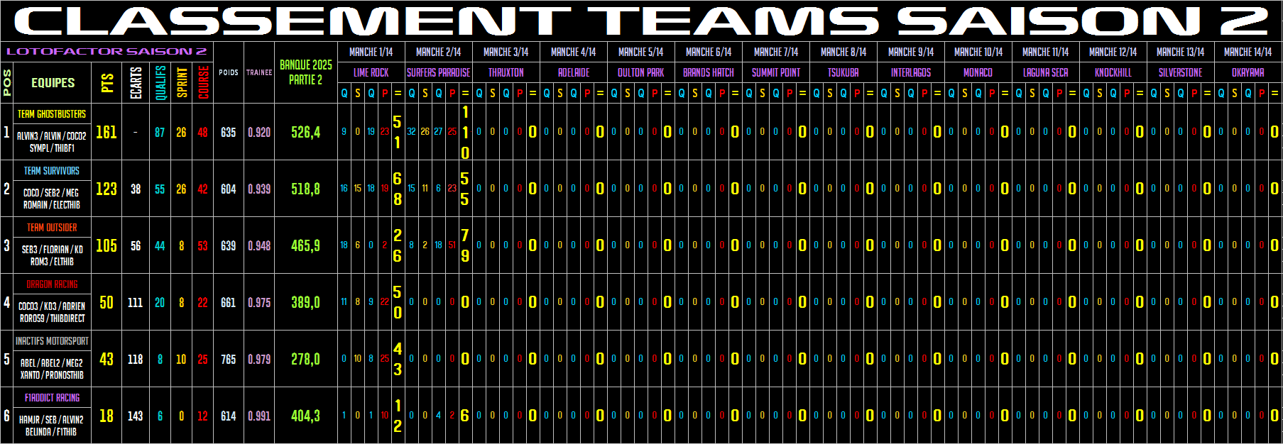 Post subject: CLASSEMENT CONSTRUCTEURS |