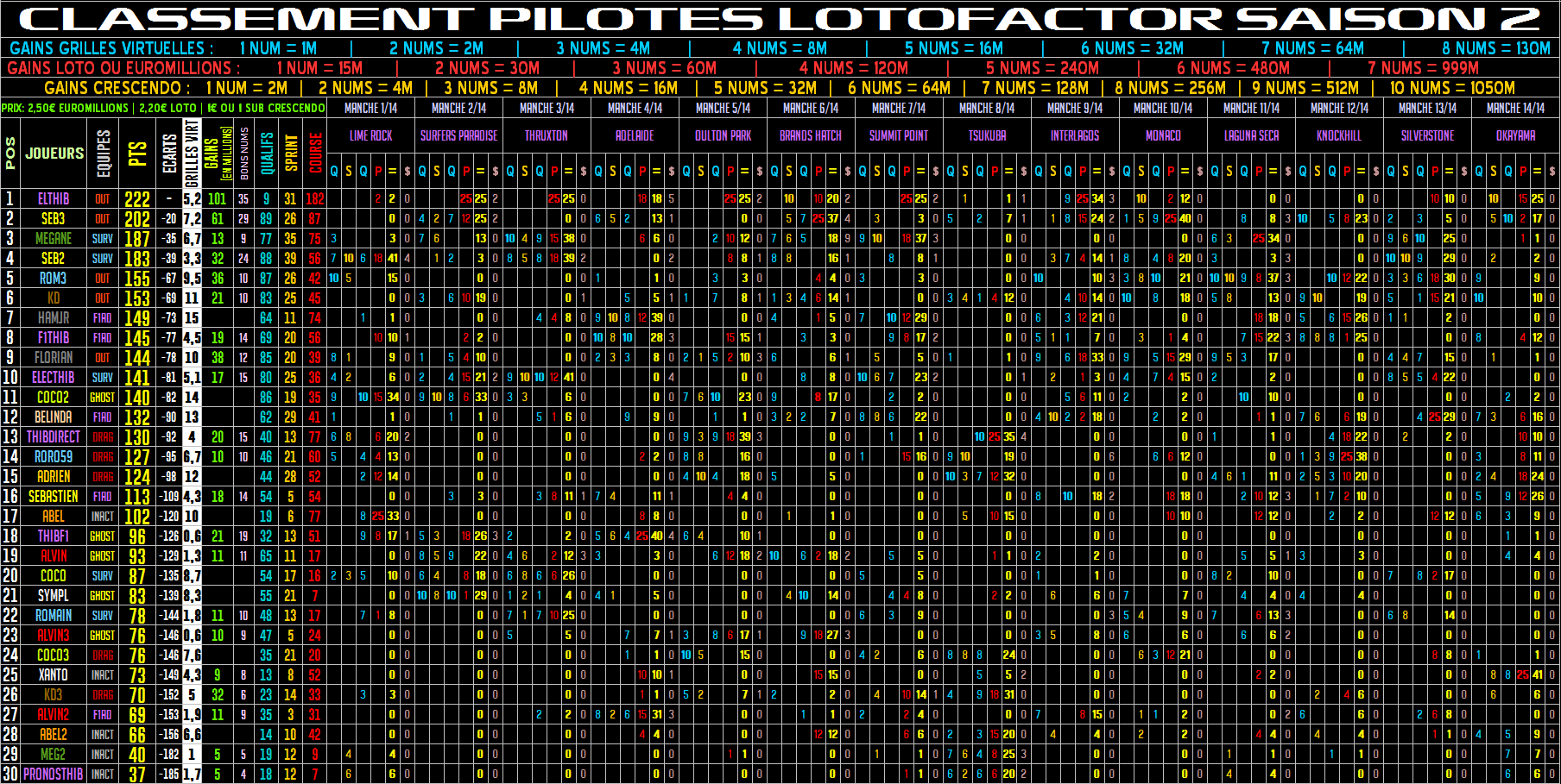 Post subject: CLASSEMENT PILOTES |